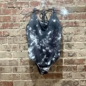 Athleta Tie Dye One Piece Swimsuit Halter Neck Cutout Back Size Large Petite