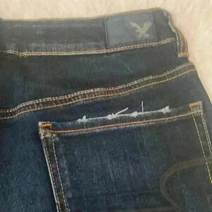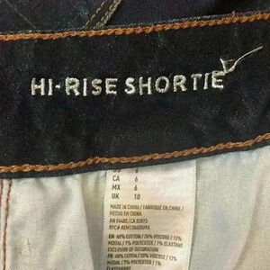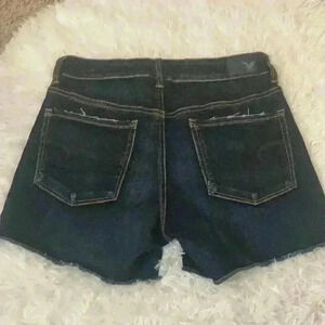 AMERICAN EAGLE HIGH RISE SUPER STRETCH DISTRESSED SHORTIE DENIM SHORTS SIZE 6