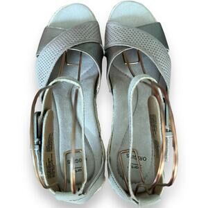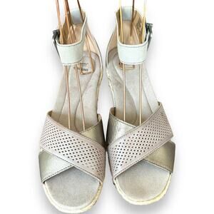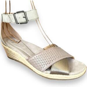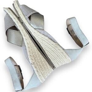 Earth Platinum Naples Natasha Leather Espadrille Low Wedge Sandal Size 10