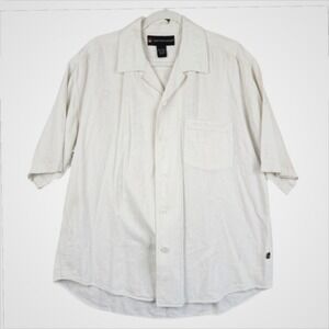 Vintage Damani Dada Mens Linen Casual Button Up Shirt Size L White Baggy Y2K 90s