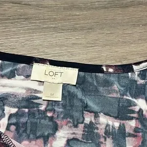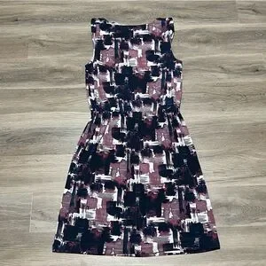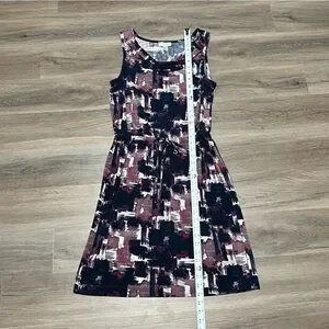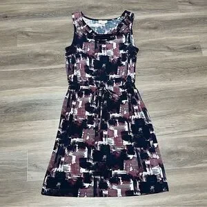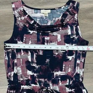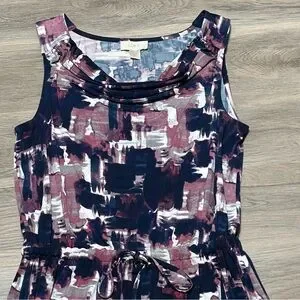 Loft Medium Dress Purple Blue Cowl Neck Drawstring Abstract Sleeveless Stretch