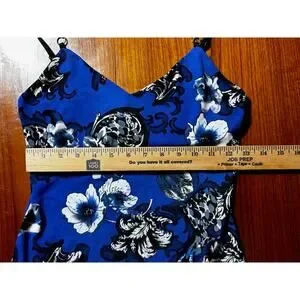 Colors are deep azure blue with black and white floral pattern.