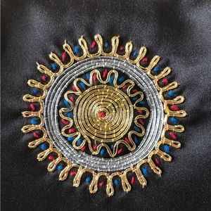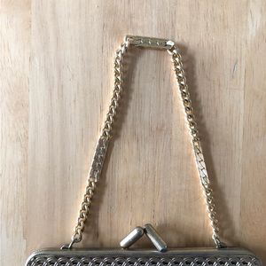 Vintage Black satin Embroidered front small purse clutch with gold chain