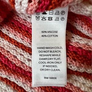 The halter neck and sleeveless design provide a flattering and comfortable fit, while the vibrant striped pattern and crochet accents add a touch of uniqueness. Colors in picture #3 most accurately reflect true colors.