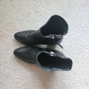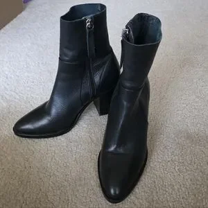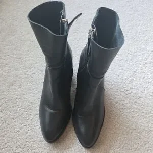 Chic black heeled booties with side zipper. Perfect for elevating any outfit. Sleek high ankle booties complete the perfect date night look.