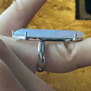 This beautiful ring features a real, earth mined blue lace agate. The stone is completely natural and not treated in any way. It measures about 37x16mm. The ring is set in solid .925 sterling silver, making it perfect for regular wear. The ring in the photos is the actual one you will receive, so please see photos for quality and measurements. Size 6.