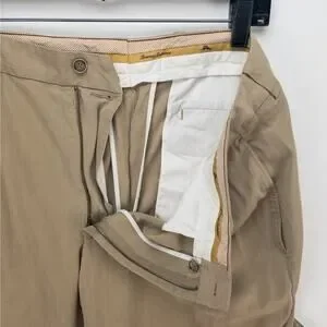 Banana Republic Pleated Silk Blend Pants Men’s 34 Tan Relaxed Fit Straight Leg