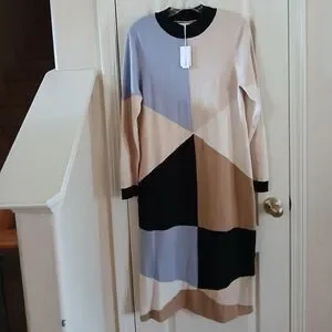Stitch Drop Color Block Midi Maxi Sweater Dress Size Medium.