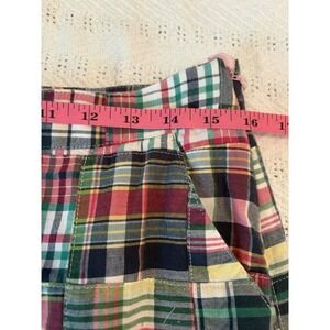 The Brooks Brothers 346 Skirt in size 6 is a classic preppy piece with a quilt patch plaid design in multicolor. Made from cotton knit fabric, this knee-length skirt features a zip closure, making it perfect for casual or travel occasions. The straight and pencil style skirt has a mid-rise fit and is lined for added comfort. With a nod to university and preppy themes, this skirt is a versatile addition to any wardrobe, suitable for all seasons.