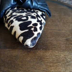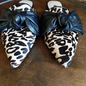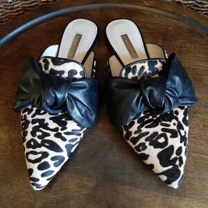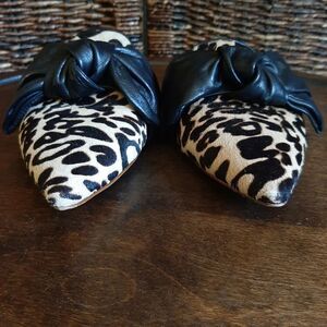 Louise et Cie Lo Cela Cow Hair Leather Slip On Mules 6 36.5 Bow Jaguar Print Western Designer Flats