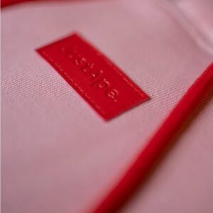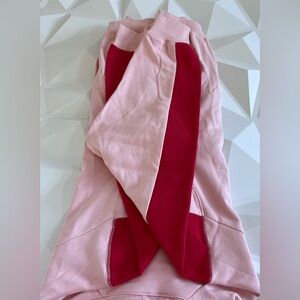• Design: Beautiful pink base with bold red "split" stripes from shoulder to wrist.