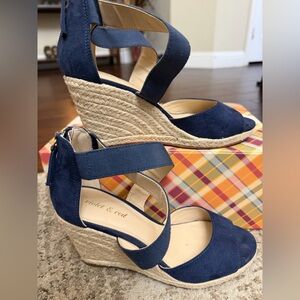 Elevate your look with these elegant navy wedge sandals. Perfect for any occasion, they combine style and comfort effortlessly.