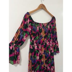 Diane von Furstenberg DVF Pink Floral Mesh Maxi Dress Bell Sleeve Medium