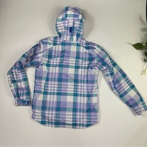 Columbia Girls Jacket Large Hooded Plaid Windbreaker Raincoat Rain
