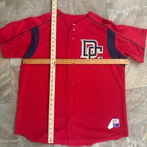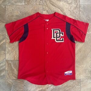 Command attention with this vibrant Washington Nationals baseball jersey from the Majestic Authentic Collection. The striking red hue instantly grabs the eye, while the navy and gold accents add a touch of classic sporty appeal. The embroidered 'DC' logo on the chest showcases your team pride with bold sophistication, and the lightweight, breathable fabric offers all-day comfort, whether you're cheering from the stands or hanging out with friends. A Majestic Athletic patch adorns the lower front, authenticating your baseball jersey as a part of the Majestic Authentic Collection. Perfect for showing your support at the ballgame, tailgating with fellow fans, or adding a sporty touch to your casual weekend wardrobe.
