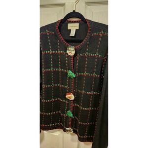 Lemon Grass Christmas Sweater Size Large, Holiday Cardigan, Preowned