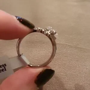 Heart shape cubic zirconia swirl band stainless steel ring