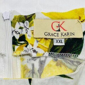 Grace Karin Swing Dress Women's XXL White Yellow Lemons Sleeveless Fit + Flare