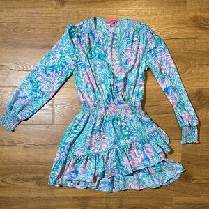 Lilly Pulitzer Blue and Pink Long Sleeve Dress Size 4