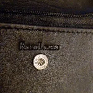 Elegant black leather coin purse the key chain is missing. Features Ralph Lauren logo. Some wear on the corners. shown in pictures.