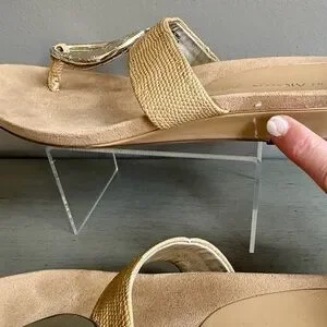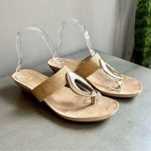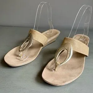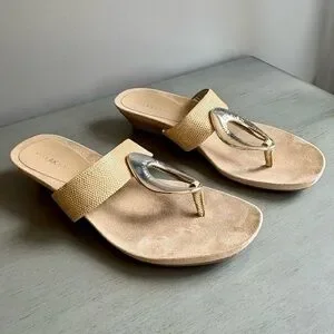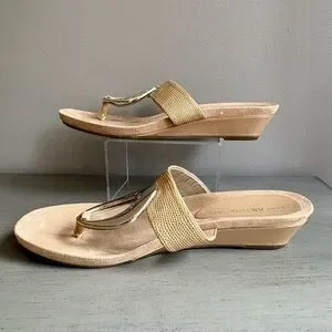 Anne Klein AK Women Tan Wedge Sandal Slide Thong 8 Neutral Gold Circle Summer