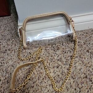 NWT TAYLOR Style Chic Transparent Crossbody Bag with Gold Chain
