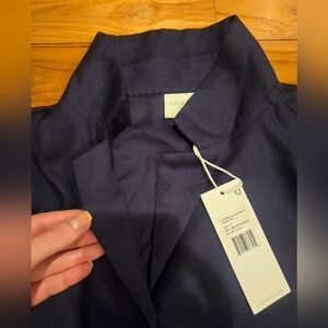 Comfortable navy blue pajama set with button-up top and elastic waist pants. Material is very light and soft.
