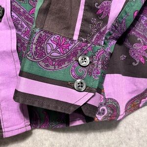 ETRO Shirt Womens Paisley Button Up Long Sleeve Stretch Cotton Purple Italy