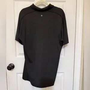 Lululemon Metal Vent Tech short sleeve polo shirt in a versatile deep coal/black heathered colorway. Designed for training, golf, and everyday wear with lightweight, breathable performance fabric.