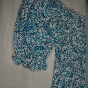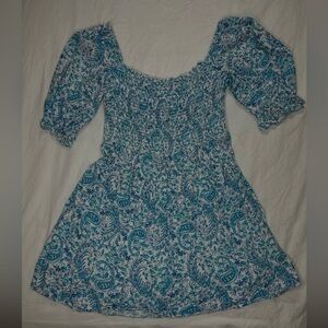 City Studio Blue Paisley Print Puff Sleeve Smocked Mini Dress - Teen Size M
