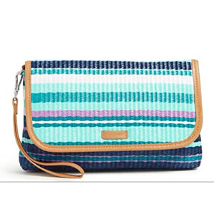 Vera Bradley Blue Teal Purple Striped Clutch Wristlet