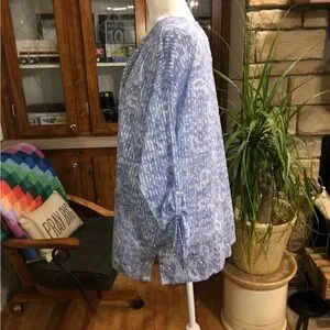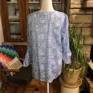 Pure Jill size Large blue and white heavily embroidered paisley blouse. Sleeves are long and can be buttoned up.