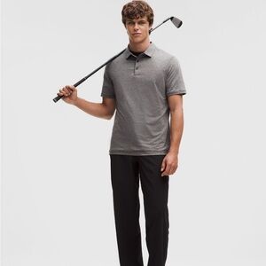 Lululemon Evolution short sleeve polo shirt in a versatile gray heather. Designed for on-the-move comfort with a sleek, athletic look that works for golf, travel, and everyday wear.