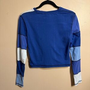 Ragged Jeans Blue Patchwork Crop Top, Long Sleeve Colorblock Tee, Size M