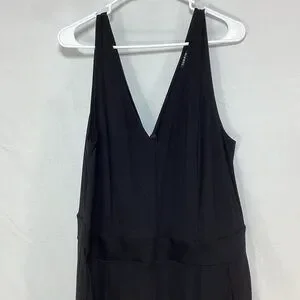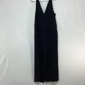 Stylish black jumpsuit with a deep V-neck. Sleeveless design for versatile wear.