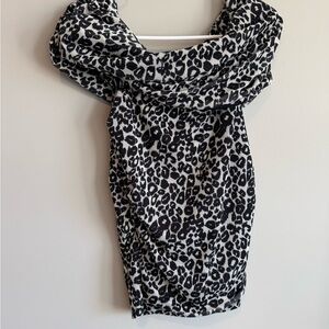 NWT! Stylish off-shoulder dress with a bold black and white leopard print. Perfect for a night out, paired with jeans, skirt or shorts. Lots of stretch. Also selling skirt in another post that was sold separately at the store.