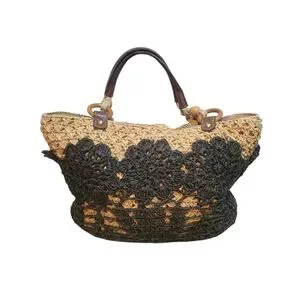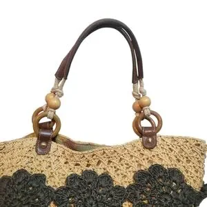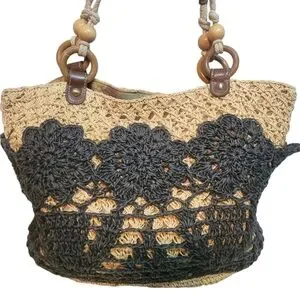 Natural straw with black crochet overlay