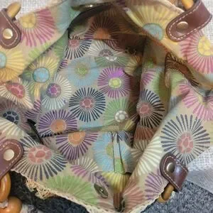 Fossil Straw Crochet Tote Bag Boho Black Floral Leather Handle Summer Purse