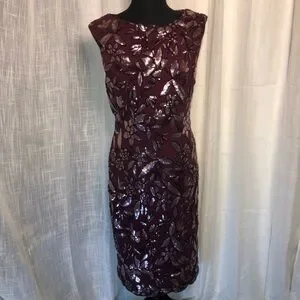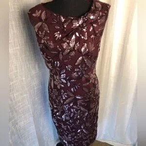 JS Collection Burgundy Floral Sequin Sleeveless Dress size 8
