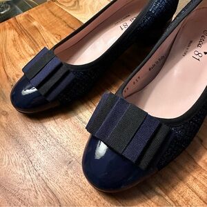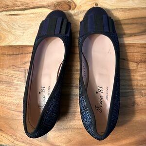 Ferca 81 Made in Italy Leather Navy Flats With Bow, 8