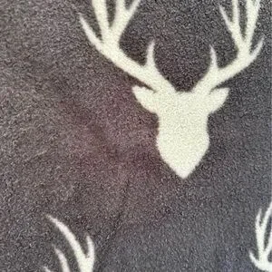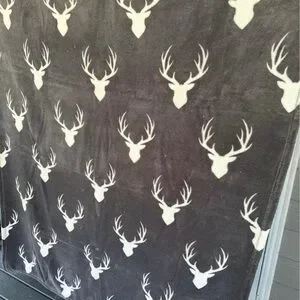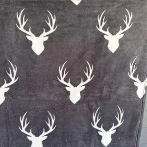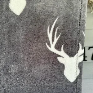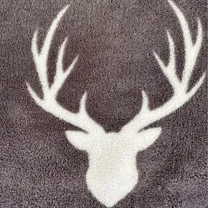 Cozy gray blanket featuring a white deer head pattern. Perfect for adding a touch of nature to your home decor.