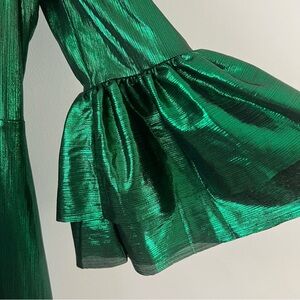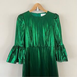 Tuckernuck pomander place Crinkle lurex Lillith midi dress xs Emerald green