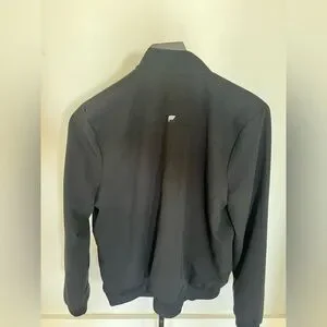 Sleek heavy black bomber jacket. Modern design with a comfortable fit. Ideal for casual wear.