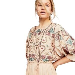 Free People S Mesa Embroidered Cut-Out Midi Dress Beaded Tassels Bohemian Boho