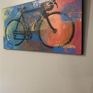Vibrant canvas featuring a bicycle design. Perfect for adding a pop of color to any room.