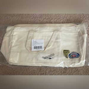 Perfectly patched and ready to be taken anywhere, this fun tote features a utility-inspired design with spacious interior and exterior pockets for all of your necessities.