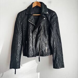 Mauritius Black Lambskin Zebra Print Leather Moto Jacket S