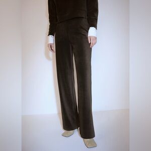 Corduroy fabric. Straight design. Long design. Mid-rise. Elastic waistband. No closure. Total look.
