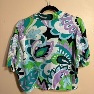 Steve Madden Psychedelic Print Crop Top, Retro Mod Button Front Shirt, Size M