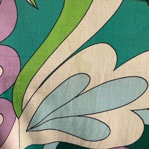 Bold retro-inspired crop top by Steve Madden featuring a vibrant psychedelic swirl print in teal, lavender, green, and black. Button front with a relaxed collar and short sleeves. Lightweight cotton fabric with a boxy cropped fit. Statement piece perfect for festival wear, vintage-inspired styling, or layering.